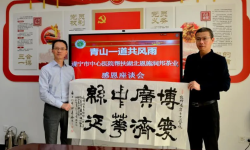 带着当地5万名茶农的感谢之情,今(9月29日)上午,乐竞网页版登录入口-乐竞online(中国)公司张文旗董事长携副总经理谭书玲专程来到遂宁市中心医院拜访。医院党委书记陈拥军,党委委员、工会主席王晓红等领导接待并进行了座谈会。